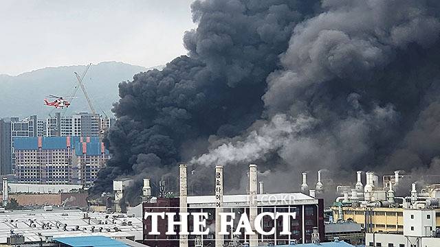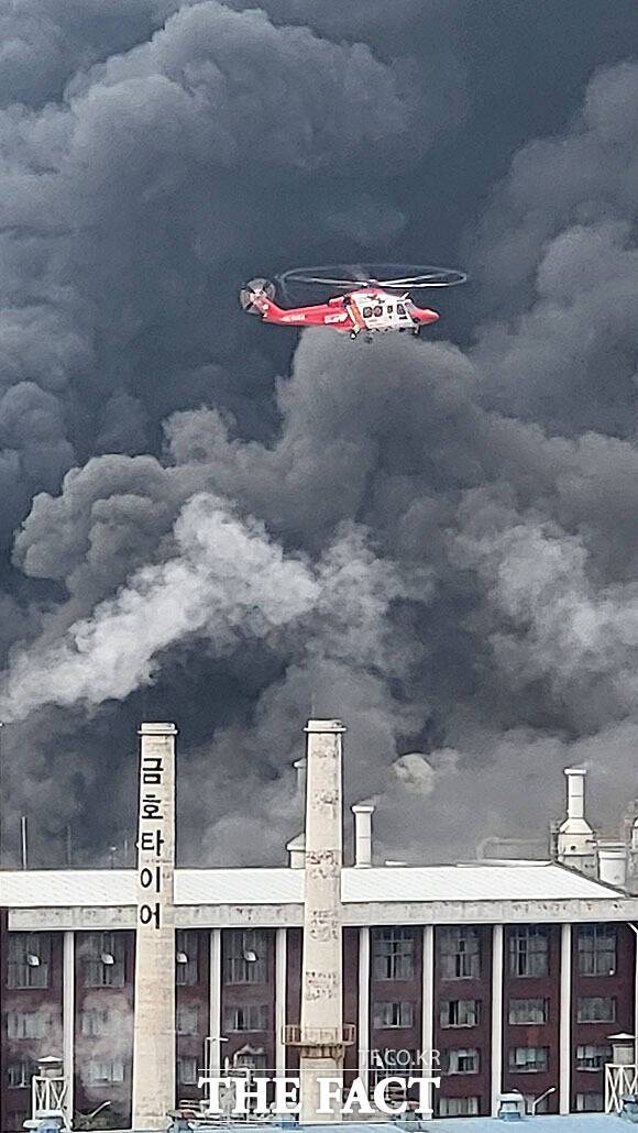 광주 금호타이어 화재…검은 연기 피어 오르는 현장 [TF포착]