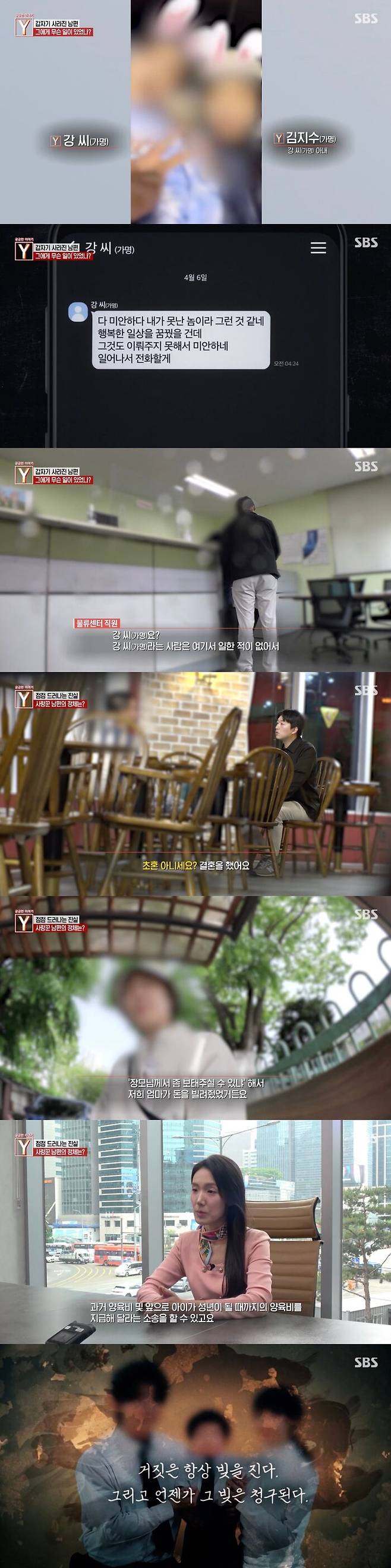 16일 방송된 SBS '궁금한 이야기 Y'에서는 사라진 남편을 찾아달라는 한 아내를 만났다.
