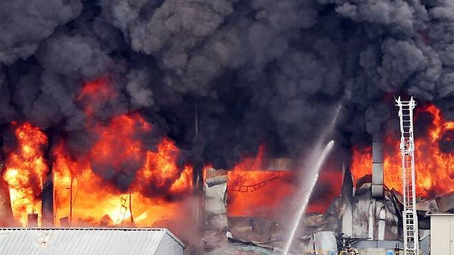 소방 당국에 따르면 생고무와 화학약품 등 타이어의 기본 재료를 혼합하는 정련 공정 내 전기 오븐 장치에서 불이 시작한 것으로 잠정 파악됐습니다.