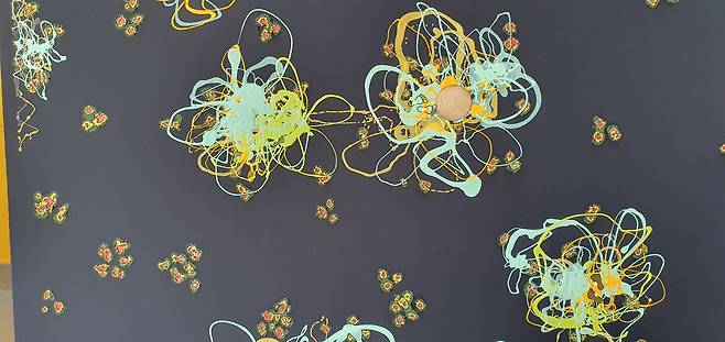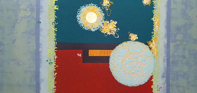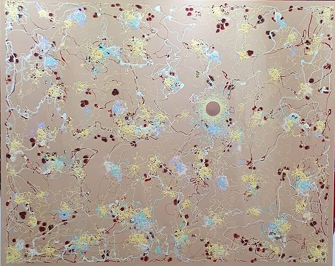"겹겹의 흐름과 깨어남"이란 제목이 붙은 전시회로, 25점을 선보인다. 패널 위에 섬유를 덧대고, 캔버스 위에 금속오브제, 유화 물감, 페인트, 파스텔 등으로 한 혼합작업으로 작품을 생산했다.
