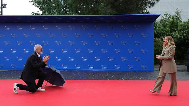 영국 더타임스는 라마 총리가 알바니아 티라나에서 열린 유럽정치공동체(EPC) 정상회의에 참석한 멜로니 총리를 무릎 꿇고 환영했다고 보도했습니다.