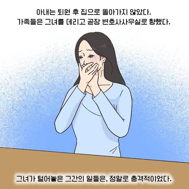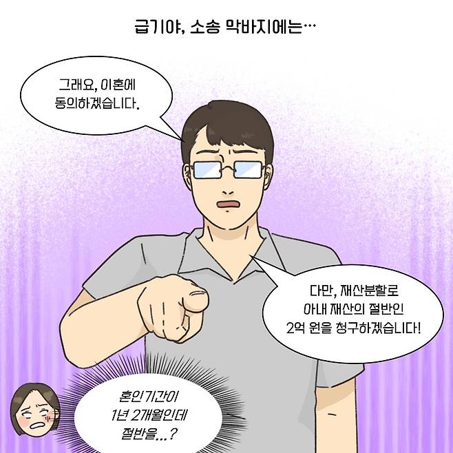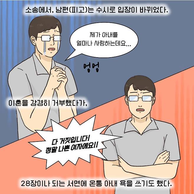 (※이 기사는 이혼 소송 과정에서 필요한 법률 지식을 웹툰 형식으로 이해하기 쉽게 제공할 목적으로 제작됐습니다. 실제 사례를 각색한 내용으로 언급되는 이름과 지명 등이 실제와 같은 경우가 있더라도 이는 우연에 의한 것임을 밝힙니다.)