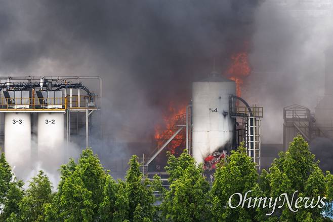 화재 진화에 사용할 소방용수 확보를 위해 인근 주민들은 수돗물 사용 자제 요청까지 받은 상황이다.
