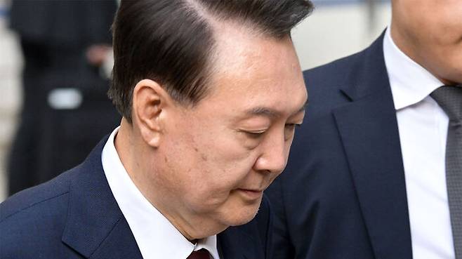 ▲ 윤석열 전 대통령이 12일 서울 서초구 중앙지방법원에서 열린 내란 우두머리 혐의, 직권남용 권리행사방해 혐의 사건 3차 공판을 마친 뒤 법정을 나서고 있다.