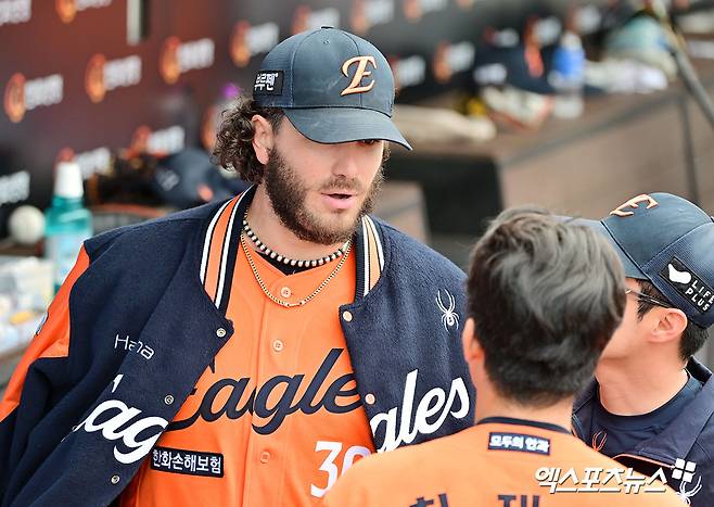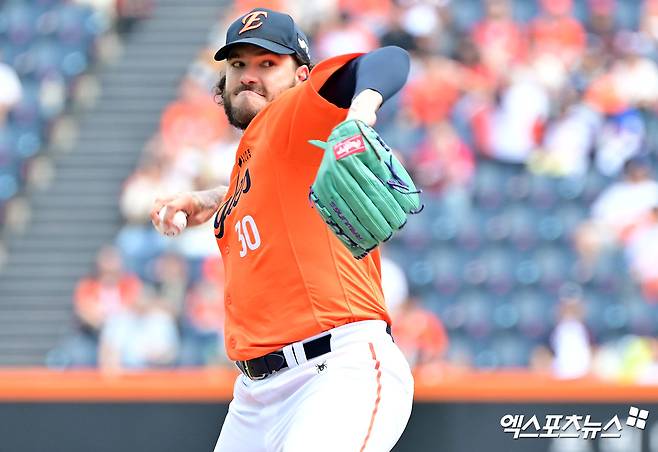 계속되는 삼진 행진. 4회초에는 체인지업으로 박성한에게 헛스윙 삼진을 이끌어냈고, 최정은 2루수 황영묵의 호수비 도움을 받아 땅볼로 돌려세웠다. 이어 한유섬은 볼카운트 2-2에서 156km/h 직구로 헛스윙을 삼진을 잡았다.