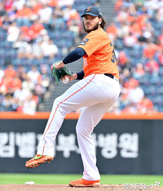 폰세는 1회초부터 아웃카운트 세 개를 모두 삼진으로 처리했다. 리드오프 최지훈을 3구로 낫아웃 삼진 처리한 폰세는 157km/ 직구로 박성한에게 루킹 삼진을, 최정에게 헛스윙 삼진을 솎아냈다.