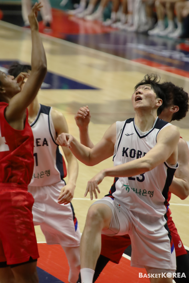 김승우의 3점포 두 방이 연달아 터졌다. 이주영의 속공, 유민수 골밑 장악. 이유진의 스텝백 3점까지 터졌다. 전반에만 10개의 외곽포를 터뜨린 한국은 45-32로 전반을 마쳤다.