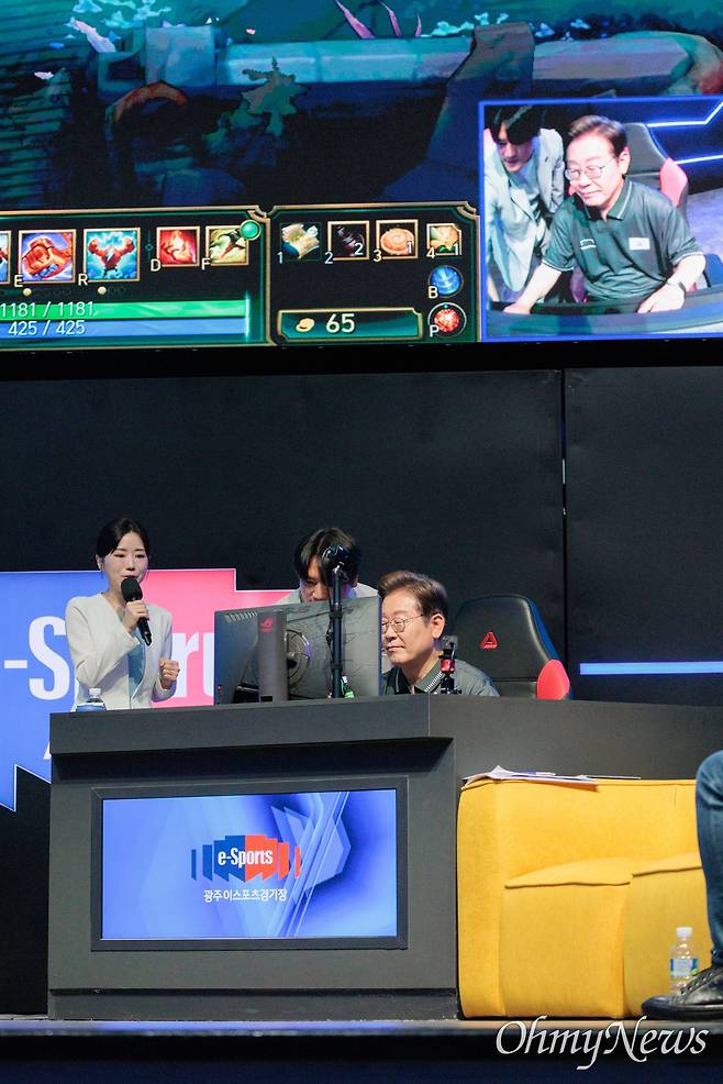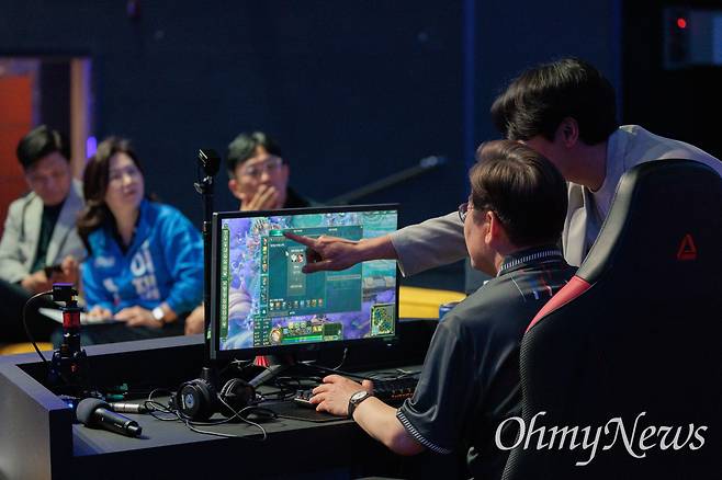 [오마이포토] e스포츠 도전하는 이재명 "너무 어려워, 포기!"