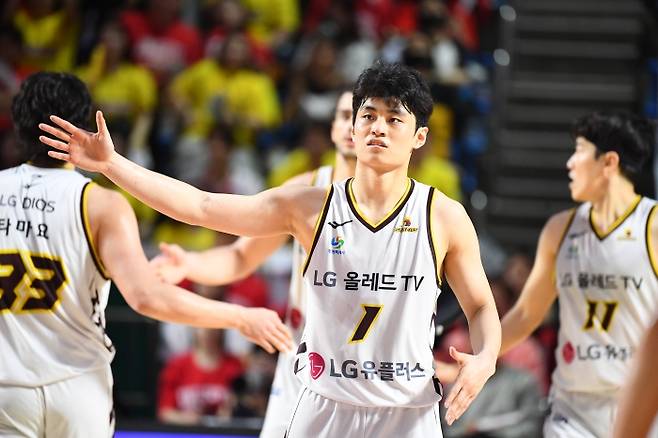 하지만 LG는 이날 적지에서 치른 7차전에서 경기 내내 우위를 지킨 끝에 그토록 고대하던 우승의 꿈에 마침표를 찍었습니다. 조상현 LG 감독을 비롯한 선수단 전체가 힘을 합친 결과지만 유기상(12득점, 3가로채기)의 활약도 송골매의 눈을 그려 훨훨 날게 오르게 했다는 평가입니다.