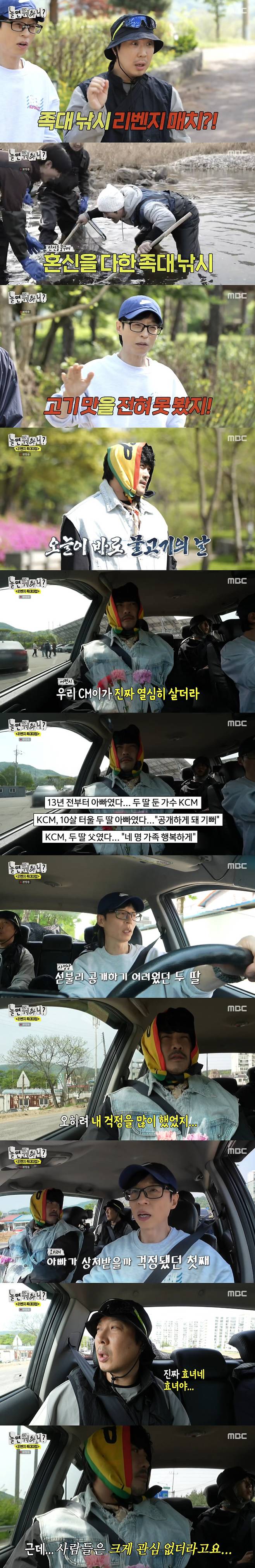 이어 대물을 잡기 위해 이동, 그때 하하는 "KCM이 어쩐지 진짜 열심히 살더라"고 언급했다. 최근 KCM은 13년 전 결혼해 두 딸의 아빠임을 밝혔던 바.
