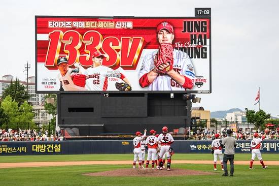KIA 마무리 투수 정해영도 9회 초 등판해 오명진과 강승호를 삼진으로 돌려세운 뒤 김기연을 3루수 땅볼로 잡고 경기를 마무리했다. 정해영은 깔금한 삼자범퇴로 시즌 12세이브이자 개인 통산 133세이브를 달성했다. 정해영은 선동열 전 감독(132세이브)과 함께 올라 있던 타이거즈 프랜차이즈 개인 통산 최다 세이브 기록을 새로 작성했다.