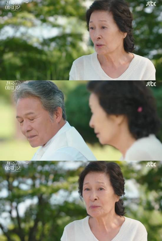 17일 방송된 JTBC 토일드라마 '천국보다 아름다운' 9회에서는 이영애(이정은 분)가 이해숙(김혜자)가 자신의 딸이라는 사실을 알게 된 모습이 그려졌다.