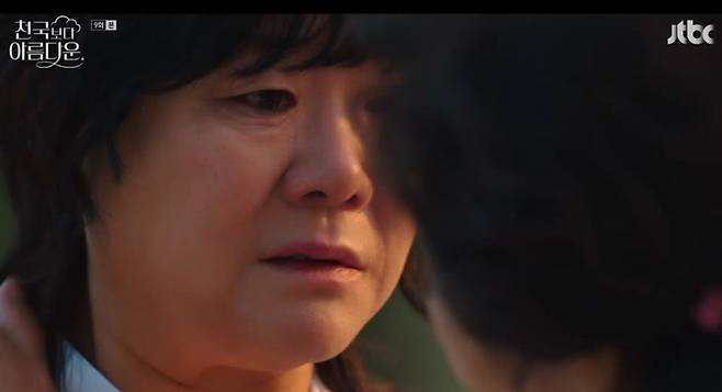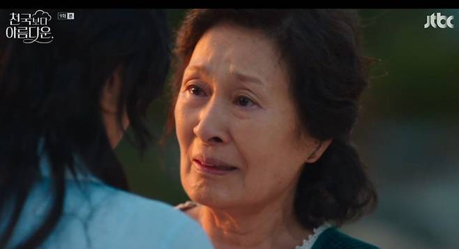 17일 JTBC ‘천국보다 아름다운’에선 눈물로 영애(이정은 분)를 보내는 해숙(김혜자 분)의 모습이 그려졌다.