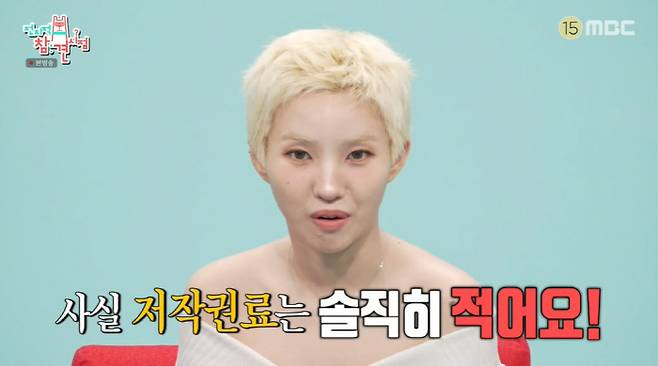 그때 홍현희는 "소연 씨가 만든 노래마다 대박이 나지 않았냐. 저작권료가 상상이 안 된다"면서 조심스럽게 물었다. 이에 소연은 "저작권료에 대해서 많이 오해하시는 것 같은데 사실 저작권료 솔직히 적다"면서 "작사, 작곡을 해도 중국 수익이 더 많다"며 답변을 토스했다.