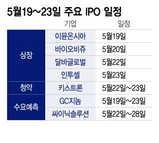 23일에는 인투셀이 기술특례 상장으로 코스닥에 입성한다. 인투셀은 항체약물접합체(ADC) 플랫폼을 개발 중이며, 수요예측에서 공모가가 희망밴드 상단인 1만7000원으로 확정됐다. 공모가 기준 상장 후 시가총액은 약 2521억원이다.