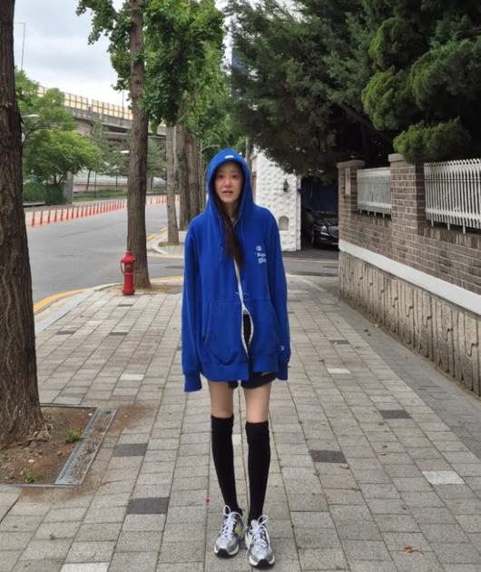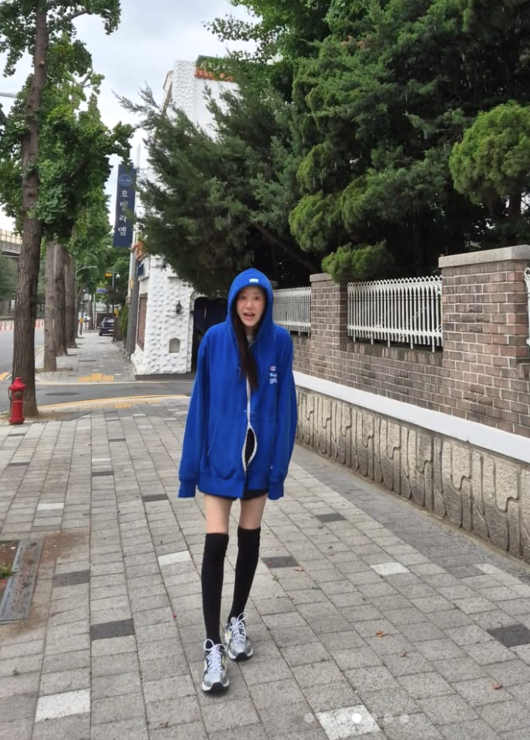 공개된 사진 속 고현정은 파란색 오버사이즈 후드에 반바지, 니삭스를 매치한 채 길거리에서 환하게 웃고 있는 모습. 운동화와 후드티를 착용한 그의 모습은 마치 여고생 같은 분위기를 자아냈다. 특히 시선을 끈 건 휘청거릴 듯한 가느다란 각선미. 그리고 후드 속 웃음 짓는 밝은 얼굴이 웃음을 자아낸다. 너무 마른 다리 라인이 팬들의 걱정을 자아내기도.