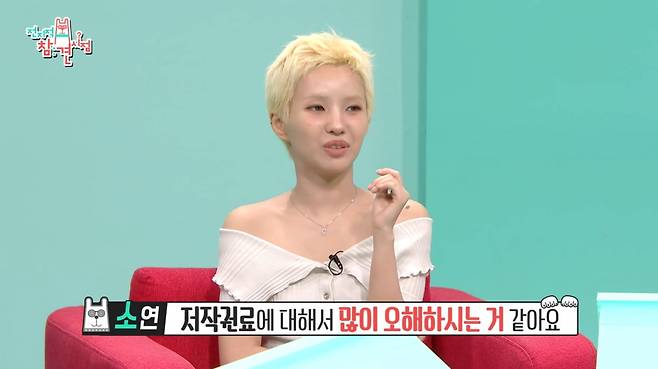 소연은 "저작권료에 대해 오해를 많이 하시는 것 같다. 저작권료는 솔직히 적다"고 밝혔다.