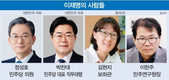 더불어민주당 이재명 후보는 당내 '비주류 중 비주류'로 시작해 압도적 득표율로 대선 후보가 됐다. 이런 사정 때문에 그간 쌓아온 측근 그룹의 분파도 다양하다. 2017년 대선부터 이 후보를 도운 7인회와 기초자치단체장 시절부터 함께한 성남·경기 라인, 여의도 중앙정치 무대에서 합류한 '신(新)명 그룹'으로 크게 나뉜다.7인회 대표는 '친명계 좌장'으로 불리는 민주당 정성호 의원이다. 이 후보와 사법연수원 동기(18기)인 정 의원은 이 후보가 2017년 19대 대선 후보 경선에 출마했을 때부터 이 대표를 도왔다. 이번 대선에선 후보 직속 국가인재위원장을 맡아 이 후보 당선 시 대통령실과 내각의 밑그림을 그릴 가능성이 크다.