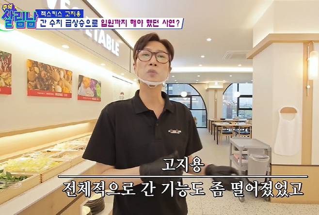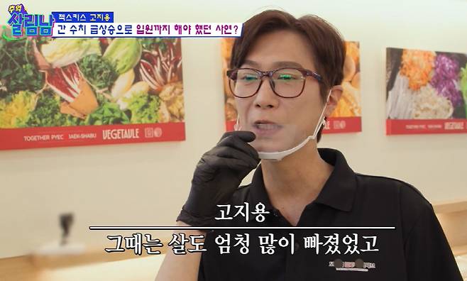 충남 아산시, 한 매장에서 고지용은 이전보다 혈색이 좋아진 얼굴로 인사했다. 고지용은 "전체적으로 간 기능이 떨어졌었다"라며 2년 전 입원한 이유에 대해 "간 수치가 급격히 올라가서 입원하게 됐다"고 밝혔다. 은지원은 "일 때문에 술을 엄청 먹는다 하더라"라 끄덕였다.
