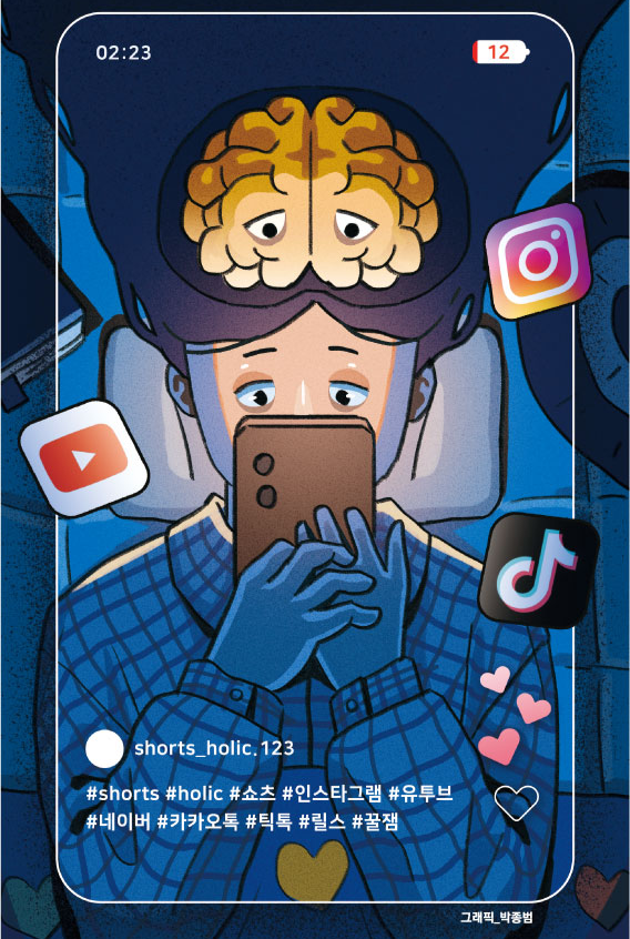 숏폼 중독은 ‘팝콘 브레인(뇌가 현실에 둔감해지고 강렬한 자극에만 반응하는 현상)’ 등과 같은 부작용으로 뇌를 도파민에 절여지게 만들 수 있다. 이는 일상에서의 무기력으로 이어질 수 있어 각별한 주의가 필요하다.
