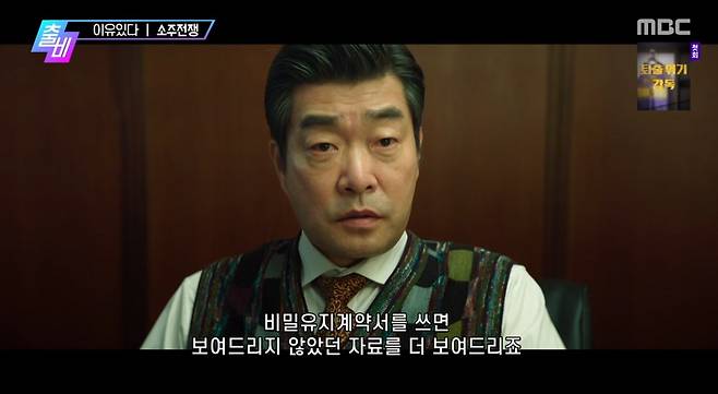 18일 낮 MBC '출발! 비디오 여행'에서는 대한민국 국민 소주의 운명을 지키려는 자와 삼키려는 자의 치열한 싸움을 다룬 영화 '소주전쟁'이 소개됐다.