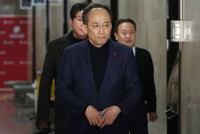 | ▲ 윤석열 대통령이 비상계엄 선포를 해제한 4일 오전 서울 여의도 국회에서 추경호 국민의힘 원내대표가 최고위원회의에 참석하고 있다. |