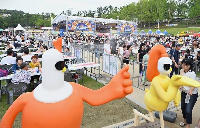 지난해 대구 두류공원에서 열린 '2024 대구 치맥페스티벌'을 찾은 시민들이 치킨과 맥주를 먹으며 즐거운 시간을 보내고 있다. <영남일보 DB>