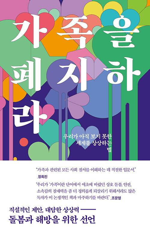 소피 루이스는 ‘가족을 폐지하라’는 구호가 사람들의 불안과 두려움을 어떻게 자극하는지 이야기한다. 가족 폐지가 사람들을 헤어지게 하리라는 불안, 가족 구조 속에서 형성된 나의 자아를 침해할 것 같은 두려움, 그리고 원가족을 사랑해서 혹은 사랑할 수 없어서 자신이 선택할 가족에 대한 가능성을 놓을 수 없는 마음을 말한다. 가족은 부르주아 경제의 축소판으로서 공공의 역할이 사유화돼 실현되고 대부분 실패하는 문제적 공간이기도 하다. 또한 “이 지구에서 가장 많은 강간과 가장 많은 살인이 일어나는 장소다.” 그럼에도 불구하고, 우리는 가족이 돌봄과 사랑의 안식처가 되리라는 기대 희망을 놓지 않는다. 저자는 “흑인, 아시아인, 선주민, 퀴어적인 노동계급 가족”의 가족폐지론을 따라가며, 가족폐지론의 다양한 역사와 가능성을 보여준다. 가족을 확장하여 혈연과 무관한, 퀴어적인, 대안을 꿈꾸는 것을 넘어서 가족이 있던 자리에 아무것도 놓지 말자고 제안한다. “가족 이후에 찾아올 아무것도 없음의 풍요” 속으로 함께 걸어 들어가자는 것이다.