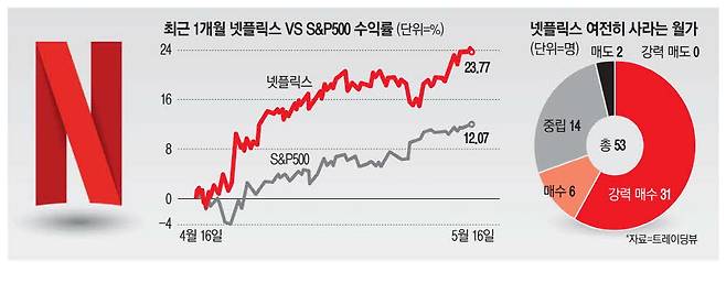 그는 "최근 주가가 많이 오른 만큼 포트폴리오에서 당장 넷플릭스의 비중을 크게 늘리기 부담스러울 수 있지만 중장기적인 상승이 기대되는 만큼 일부 보유할 필요가 있다"고 덧붙였다.