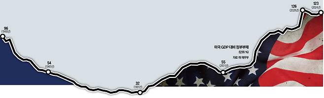 미국 재무부에 따르면 미국 국가 부채는 현재 36조2200억달러(약 5경740조원)에 달한다. 2004회계연도만 해도 국가부채가 7조3000억달러대였는데 20년 만에 5배 가까이 급증했다. 정부 재정수입보다 재정지출이 컸기 때문이다. 연방정부가 2001년 이후 매년 재정적자를 기록해 부채가 눈덩이처럼 불어났다. 특히 2016년부터는 사회보장제도, 의료 서비스, 이자 지급에 들어가는 돈이 재정 수입보다 빠르게 늘었고 코로나19를 거치면서 지출이 급증했다. 국가 부채는 미국 경제 규모의 1.2배에 달한다.