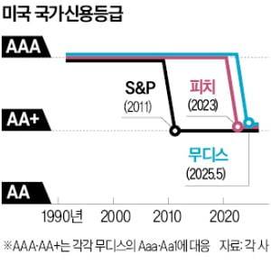 하지만 무디스의 강등 결정 배경을 경청해야 한다는 지적도 적지 않다. 특히 국채 가격이 급락할 것이라는 우려가 확산했다. 월스트리트저널(WSJ)은 “일부 투자자는 이번 신용등급 강등이 최근 무역 전쟁으로 훼손된 미국의 ‘예외적 지위’에 더 타격을 줄 수 있다고 본다”며 “미국 국채를 매입하기 위해 요구하는 프리미엄이 높아지고, 이는 국채 금리 상승과 미국 정부의 이자 부담 증가로 이어질 것”이라고 내다봤다.