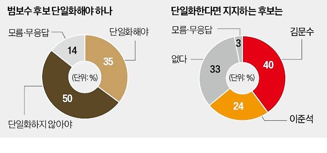 범보수 후보 간 단일화에 부정적 여론이 많은 것은 단일화에 따른 실익이 없기 때문이라는 분석이 나온다.