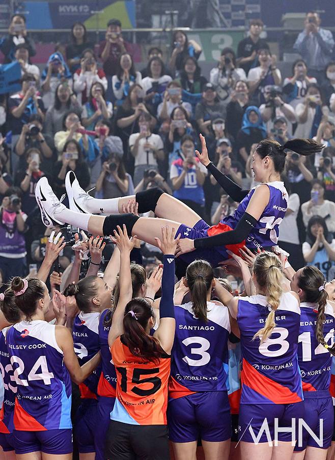 [mhn포토] 김연경 '친구들의 손에 날아오르다'