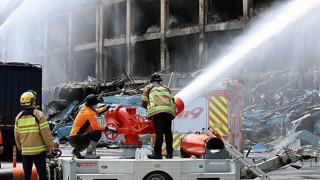 앞서 어제 아침 7시쯤 광주시 광산구에 있는 금호타이어 광주공장에서 불이 나 직원 1명과 소방관 2명이 다쳤고 공장의 50에서 60%가 탔으며, 불이 난 지 30여 시간이 지난 오늘 낮 2시 반쯤 큰불이 잡혔습니다.