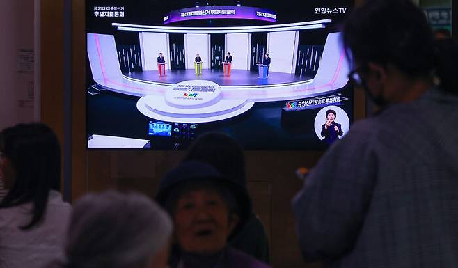 ▲ 서울역에 흘러나오는 대선 1차 후보자 토론회 중계방송
