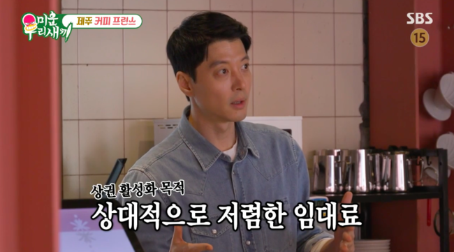 이날 제주도에서 오픈 준비를 하는 이동건을 찾아온 이상민은 감성 가득 인테리어를 보더니 “임대료 꽤 나겠겠다”라고 물었다. 이동건은 “돈을 많이 들이지 않았다. 애월에 카페하는 사람들을 위해서 임대료를 싸게 받거나 그런 게 활성화가 되어있다”라고 밝혔다.