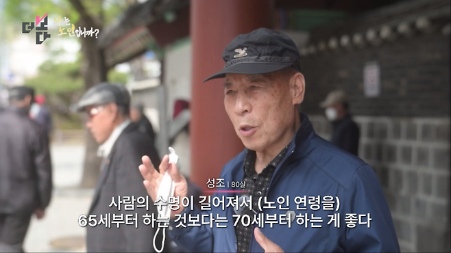 사람의 수명이 길어져서 (노인 연령을) 65세부터 하는 것보다는 70세부터 하는 게 좋다. (국민연금 혹시 나오세요?) 국민연금 받습니다. (얼마 받으세요?) 26만 원. 소득이 조금 있어서 그래요.