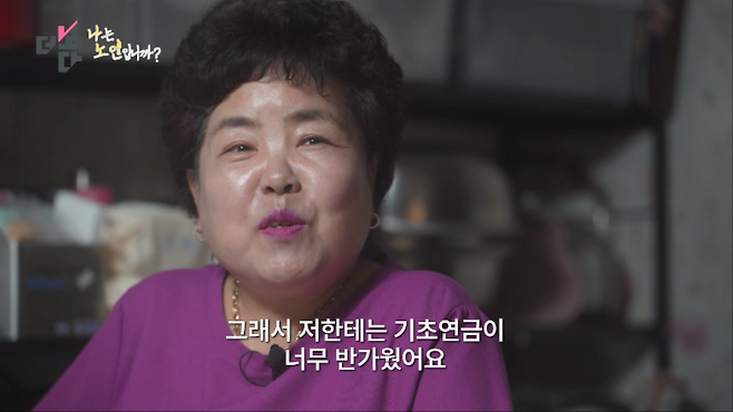 남편 돌아가시고 나서 계속 힘들었죠. 만 65세 되기만 너무 기다렸어요. 그래서 저한테는 기초연금이 너무 그냥 반가웠어요.
