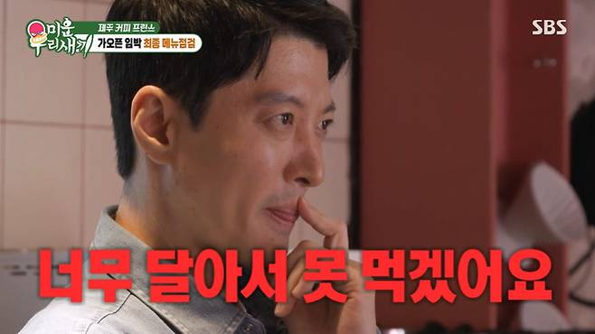 하지만 이동건이 직접 개발한 디저트를 본 유정수 대표는 "단 거에 단 거가 올라가 있고, 거기에 또 단 거가 묻어있다"며 우려되는 점을 언급했고, 직접 맛본 이후에는 "너무 달아서 못 먹겠다"며 일침을 가했다.
