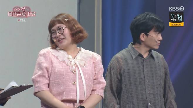 18일 밤 KBS 2TV '개그콘서트 - 썸 데프콘 어때요'에서는 신윤승과 함께 집을 보러온 조수연이 수압 등을 체크하며 달콤한 하룻밤을 상상하는 장면이 연출됐다.