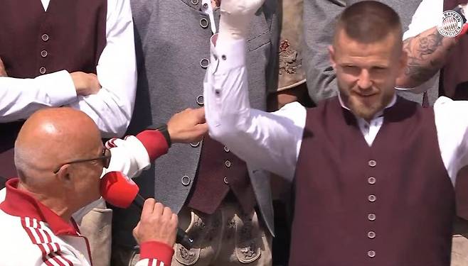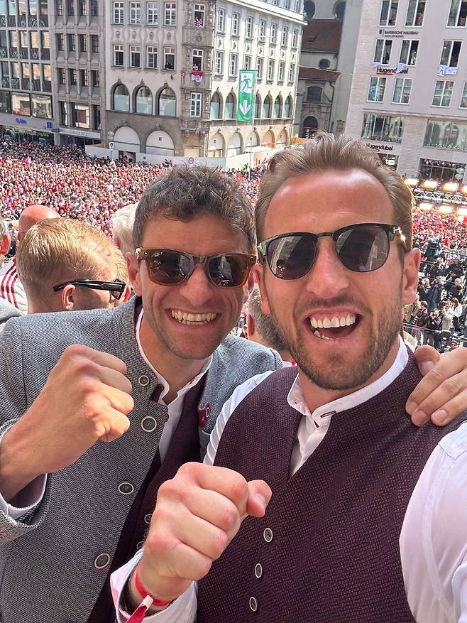 이날 우승 행사의 '주연'은 커리어를 통틀어 처음 우승한 스트라이커 해리 케인, 올 시즌을 끝으로 뮌헨을 떠나는 '전설' 토마스 뮐러였다. 뮐러는 팬 앞에서 감사 인사를 전했다. 이번여름 AS모나코로 떠나는 '우승 주역' 에릭 다이어도 작별 인사를 건넸다.
