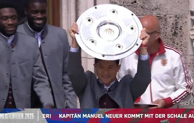 김민재는 광장을 가득 메운 뮌헨팬 앞에서 은색 쟁반 모양의 분데스리가 트로피 '마이스터샬레'를 번쩍 들어올렸다.