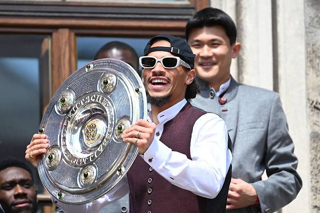 김민재는 광장을 가득 메운 뮌헨팬 앞에서 은색 쟁반 모양의 분데스리가 트로피 '마이스터샬레'를 번쩍 들어올렸다. 얼굴엔 미소가 한가득이다.