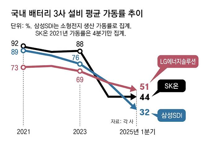 ‘불황속 미래 대비’ K배터리 3사 차입금 급증… 가동률은 최저