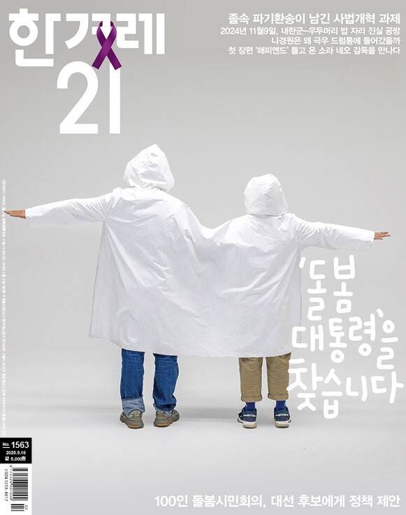 제1563호 표지 기사가 나가고 난 뒤 ‘정부가 어떻게 다 책임지나’라는 댓글이 달리기도 했다. 하지만 한겨레21이 이야기한 ‘돌봄의 사회화’와 ‘돌봄 민주주의’는 정부가 아픈 사람들을 모두 돌보라는 요구가 아니었다. 오히려 그 반대에 가깝다. ‘우리 모두가 서로를 돌볼 수 있는 사회’를 책임지고 만들어달라는 것이다. 서로를 돌보기 위해서는 아픈 가족을 간병하면서 회사에 다닐 수 있어야 하고, 부부가 육아 부담을 평등하게 나눌 수 있어야 한다. 부모가 아프다고 해서 시설에 보내고 죄책감을 느끼는 것이 아니라 지역사회에 함께 살면서도 자기 생활을 유지할 수 있는 사회, 돌봄을 제공하는 사람(가족, 요양보호사 등)도 돌봄을 받을 수 있는 사회, 돌봄 노동이 저평가되지 않고 인정받는 사회. 6·3 대선을 앞두고 그런 사회를 만들 대통령은 누구냐고 물었을 뿐이다.