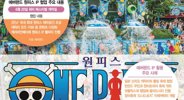 또 에버랜드가 자랑하는 워터파크 캐리비안 베이에서도 원피스 지적재산권(IP)을 활용한 테마존과 F&B존을 열고 풀파티도 진행한다.