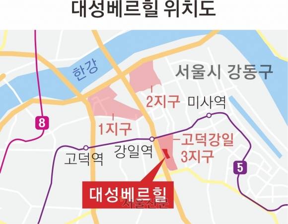 디에스종합건설㈜이 시행하고 디에스종합건설㈜·대성베르힐건설㈜이 시공하는 고덕 강일 대성베르힐은 서울 강동구 상일동 43 일원에 위치하며 지하 2층~지상 15층 13개 동, 전용 84·101㎡ 총 613가구 규모로 조성된다. 주택형별 가구수는 △전용 84㎡A 173가구 △전용 84㎡B 126가구 △전용 84㎡C 130가구 △전용 101㎡ 184가구다.