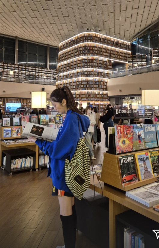 18일 고현정은 자신의 SNS를 통해 별마당 도서관을 방문한 일상을 공개했다. 파란색 오버핏 후드티에 반바지, 롱 삭스와 운동화를 매치한 편안한 차림의 그는 잡지를 고르고, 음료를 곁에 둔 채 한참 동안 책에 집중하는 모습이었다. 마스크 없이 드러낸 민낯임에도 특유의 청순한 분위기와 단정한 외모가 시선을 사로잡았다.