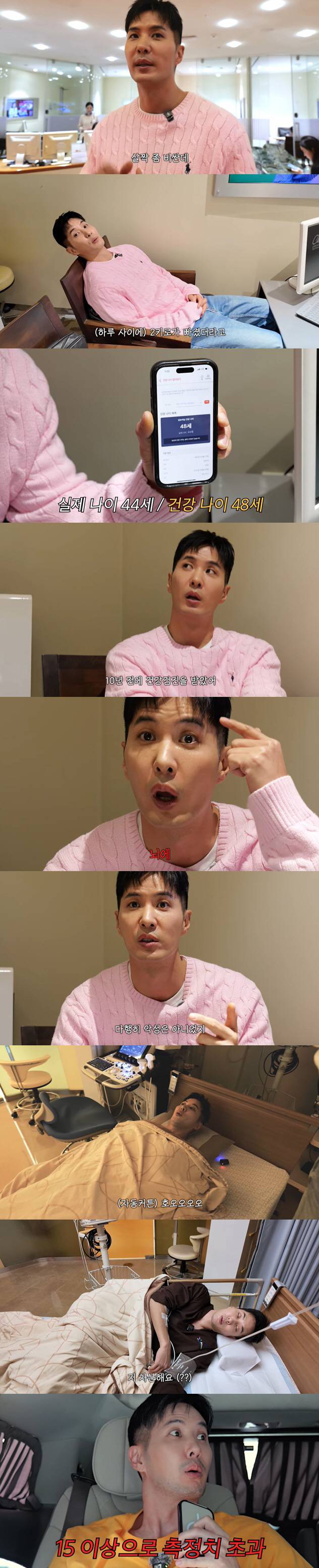 2~3년 전에 마지막으로 건강검진을 받았다는 김지석은 "당시 실제 나이가 44세였는데 건강 나이는 48세로 나왔다. 원래 40살 넘으면 내 몸이 내 몸이 아니다"고 털어놨다.