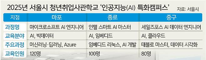 ‘오세훈표’ 청년일자리 정책인 청년취업사관학교는 빠르게 규모를 확장하는 중이다. 2021년 영등포 캠퍼스를 시작으로 현재 20개 캠퍼스를 운영 중이며, 올해 안에 5개 캠퍼스를 추가로 조성해 서울 전 자치구(25개구)에 1개씩의 캠퍼스를 완성할 계획이다. 특히 AI 특화캠퍼스 3곳을 중심으로 전체 교육과정이 AI 중심으로 개편되며 ‘AI 인재 등용문’으로 입지를 다진다는 계획이다. 청년취업사관학교는 2030 청년 구직자를 중심으로 3∼6개월 집중 교육을 통해 기업이 필요로 하는 실무역량과 스펙을 쌓도록 돕기에 만족도도 높다. 서울시에 따르면 2021∼2024년 누적 교육생 수는 6814명이며 평균 취업률은 75.4%다. 수료생 4명 중 3명이 취업에 성공한 셈이다. 지난해 수료생들은 자체 만족도 조사에서 91.6%가 만족한다고 답했다. 올해는 121개 과정을 통해 3000명 인재를 양성하며 2026년부터는 매해 4000명 교육생 배출을 목표로 한다. 주용태 시 경제실장은 “AI 글로벌 경쟁이 치열해지는 지금, 미래를 선도할 열쇠는 결국 인재”라며 “서울시는 글로벌 기업과의 협력을 통해 실무에 강한 AI 인재를 키워내고 청년들이 미래 산업의 주역으로 당당히 설 수 있도록 아낌없이 지원하겠다”고 밝혔다.